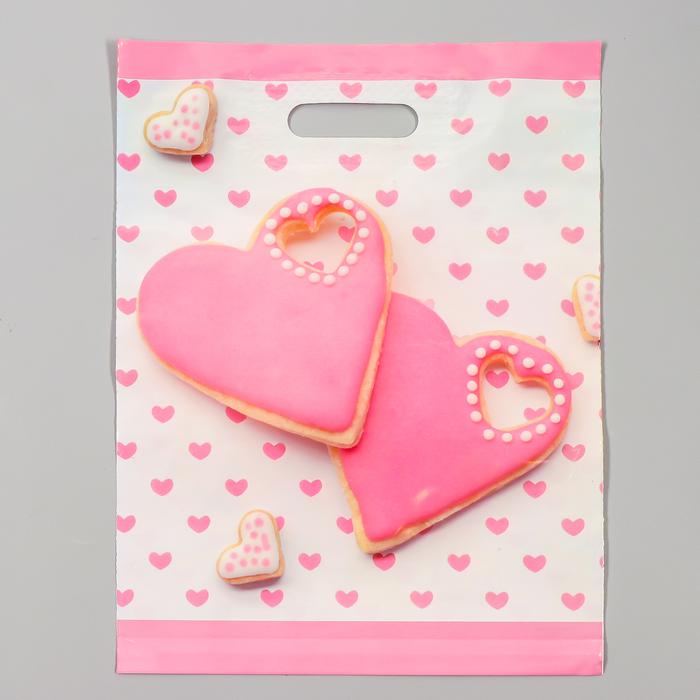 Пакет полиэтиленовый "Пряничные сердца" 31x40 см, 60 мкм, вырубная усиленная ручка ТикоПластик 4668374 50063611