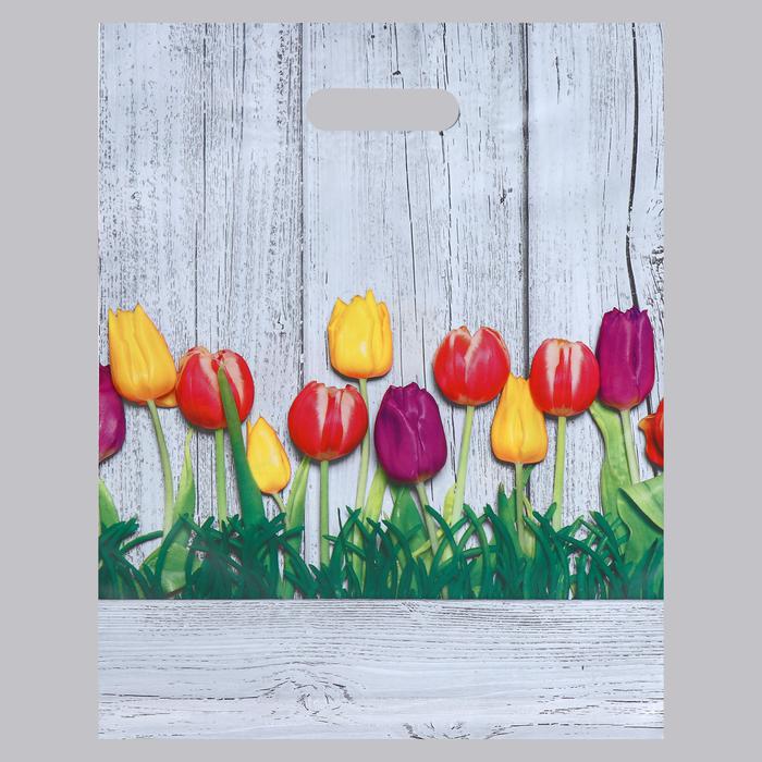 Пакет полиэтиленовый "Весенние тюльпаны" 31x40 см, 60 мкм, вырубная усиленная ручка ТикоПластик 4697583 50063599