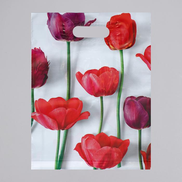 Пакет полиэтиленовый "Красные тюльпаны" 31x40 см, 60 мкм, вырубная усиленная ручка ТикоПластик 4697584 50063600