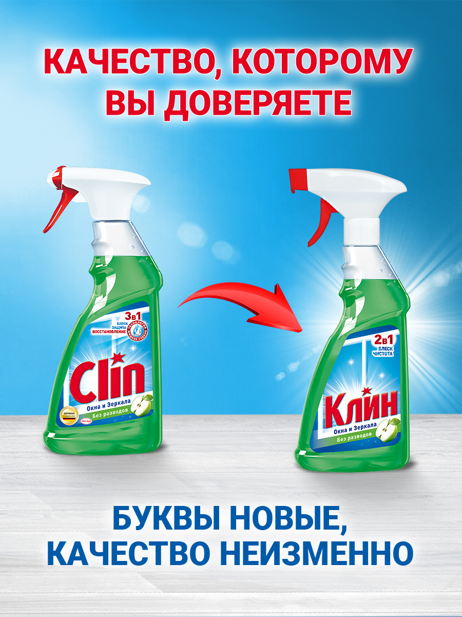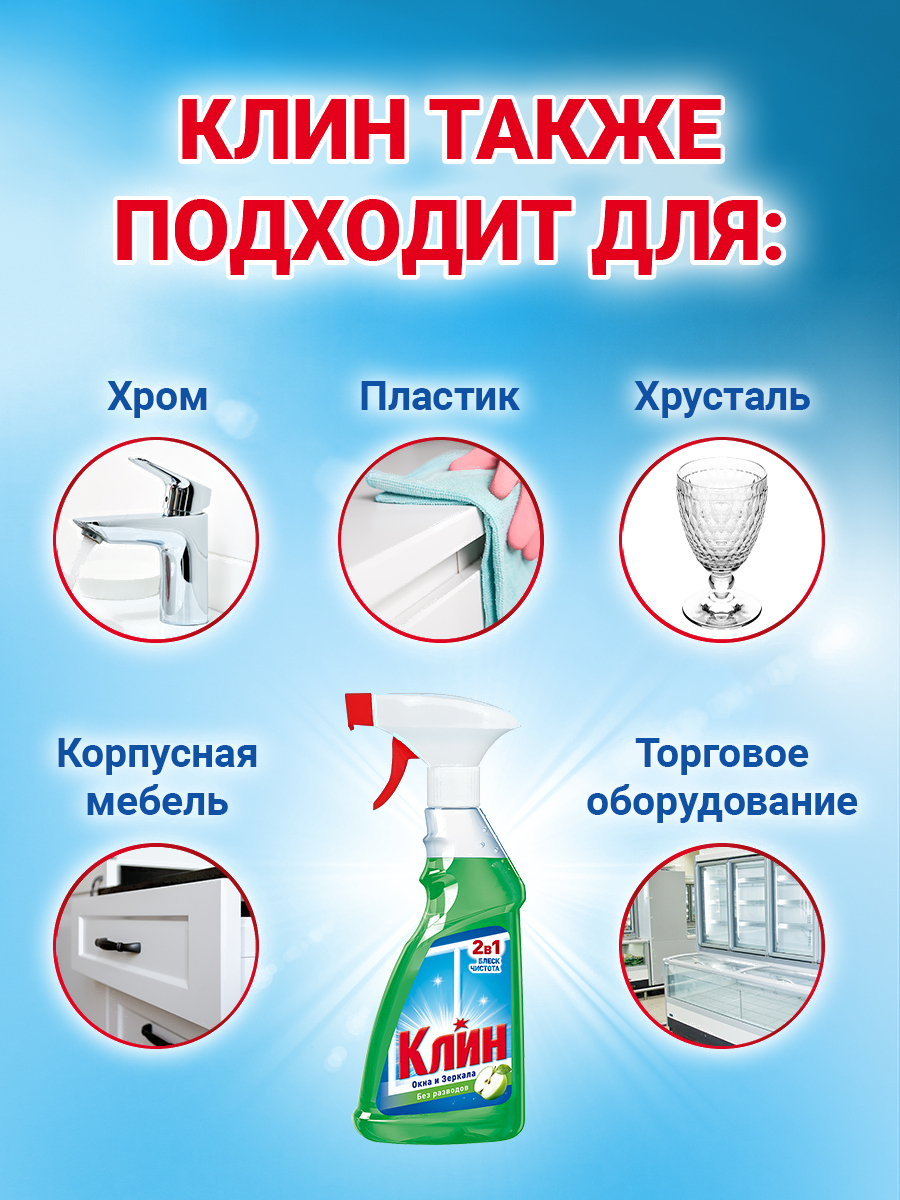 Средство для мытья стекол Клин Окна и зеркала. Яблоко (500мл)