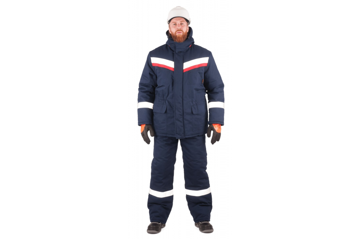 В костюме используются световозвращающие полосы шириной 50 мм для обеспечения безопасной работы в сумерках.