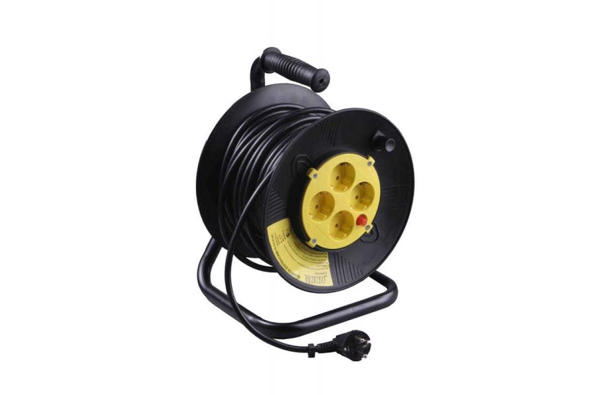 Электрический удлинитель с заземлением на катушке 40м СВЕТОЗАР SV-55083-40 используется для подключения электроприборов на значительном удалении от электросети. Он состоит из катушки и кабеля питания. На корпусе катушки находятся евророзетки с заземлением. Удлинитель оснащен автоматом защиты от перегрузок и короткого замыкания. Номинальная мощность составляет 2500 Вт.