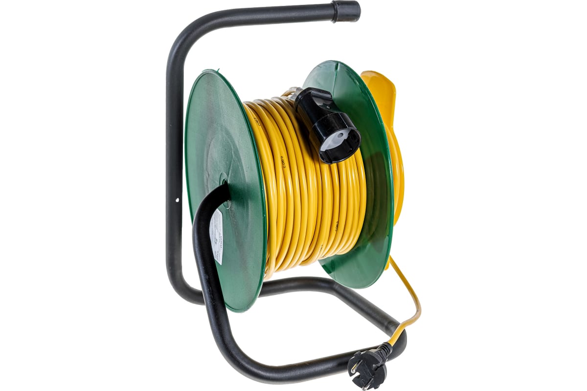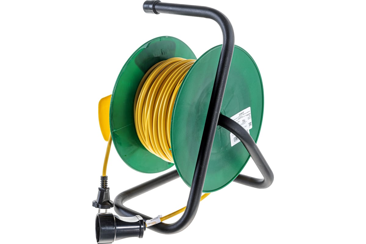 Удлинитель на катушке 40 м 1 роз. ПВС 2х0.75 duwi 28654 7 пригодится на строительной площадке, в саду или гараже для подключения электрооборудования. Корпус оснащен удобной ручкой - для более комфортной транспортировки удлинителя. Металлическая поставка обеспечивает устойчивую установку во время использования. Длина провода составляет 40 метров.