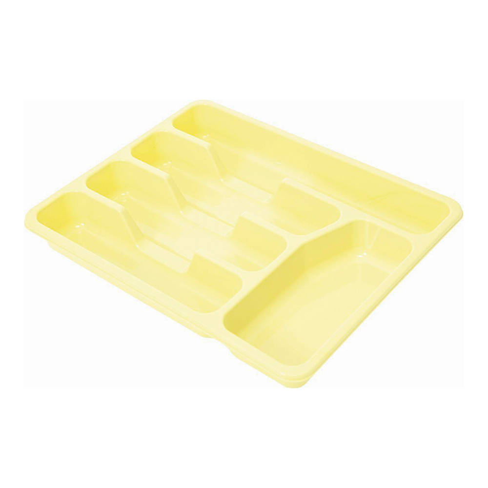 Лоток для столовых приборов поможет содержать ящик, где хранятся ложки и вилки, в полном порядке. Прочный пластик легко моется и прослужит долгое время.