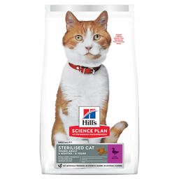 Сухой корм с уткой для молодых стерилизованных кошек и кастрированных котов Hill's Science Plan Sterilised Cat содержит уникальную формулу контроля веса, поддерживающую идеальный вес, а также сбалансированный набор минералов для поддержания здоровья функций почек и мочевого пузыря.