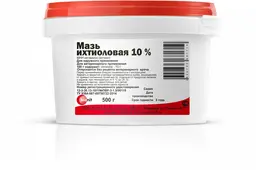 Мазь ихтиоловая 10% – лекарственный препарат в форме мази, содержащий в 100 г в качестве действующего вещества 10 г ихтиола, а в качестве вспомогательного вещества 90 г вазелина медицинского или ветеринарного.