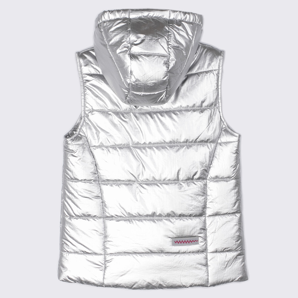 Стильный серебристый жилет для девочки отлично подойдет для весенних прогулок. Жилет оснащен ветрозащитным и водонепроницаемым материалом который защитит от дождя. Жилет со светоотражающей нашивкой, удобной застежкой на молнии с защитой от прищемления. Пришитый капюшон стянут резинкой. Выполнен из натуральных неаллергенных материалов. Предусмотрены два прорезных кармана для любимых мелочей. Жилет обеспечит тепло во время прогулки или по дороге в школу.