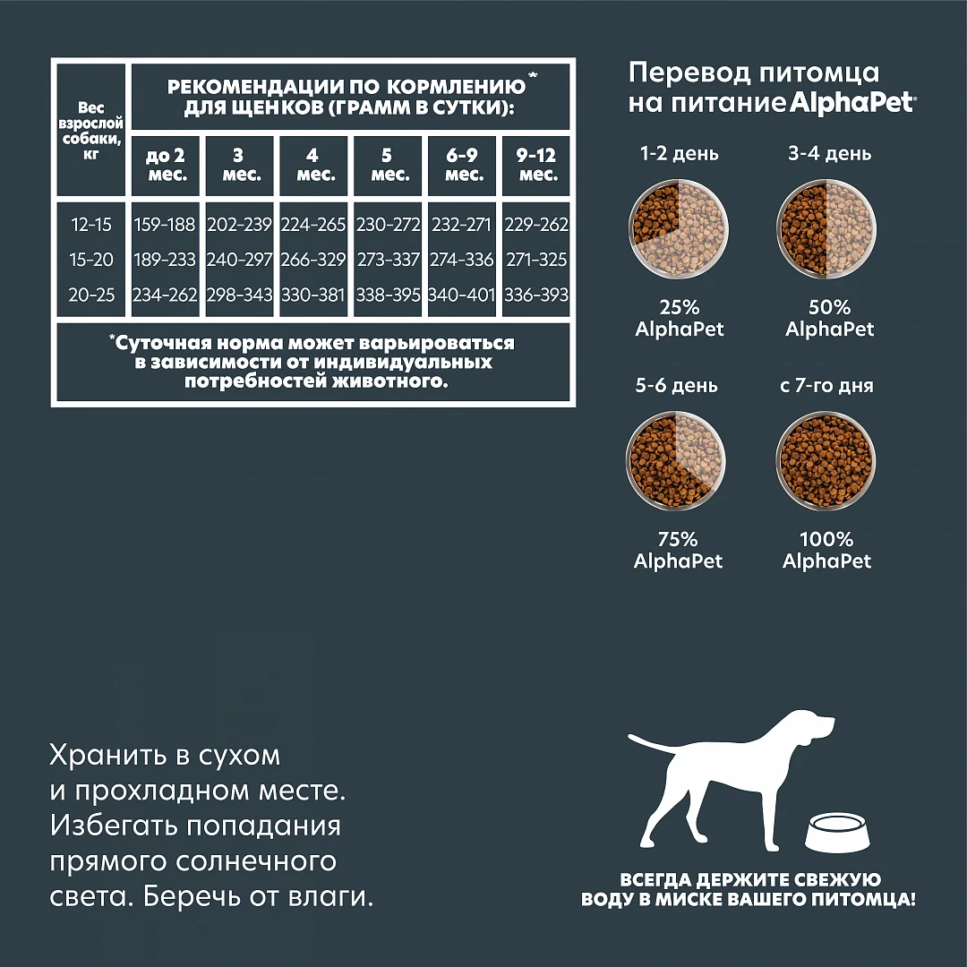 •Баланс кальция, фосфора и витамина D для правильного формирования скелета. Высокий уровень белка для нормального развития мышечной массы.