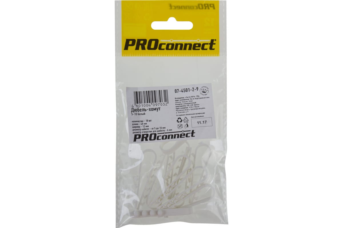 Нейлоновый дюбель-хомут PROCONNECT 5-10, белый, 10 шт. 07-4501-2-9
