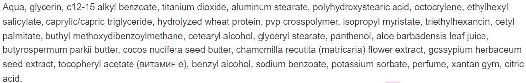 - Действие защита от солнца, увлажняющее, питание, успокаивающее