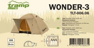 Палатка Универсальная Tramp Lite Wonder 3 (V2) Sand, арт TLT-006s