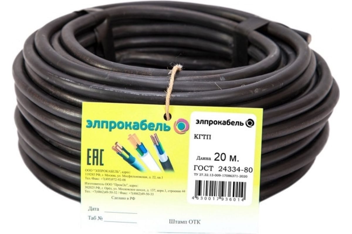 Гибкий круглый кабель ЭлПроКабель КГтп 2x2,5 ГОСТ 20 м 4630017936014