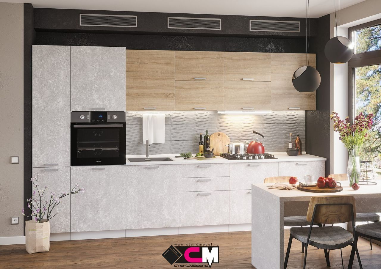 Модульная кухня Бетоны 3,4 Бетон снежный/Дуб сонома