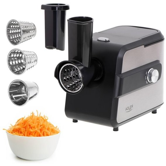 ОснащениеШинковка, Терка, Ручка для переноски, Реверс, Прорезиненные ножки, Насадка для колбасок, Насадка «кеббе», Место для хранения насадок, 3 решетки для фарша