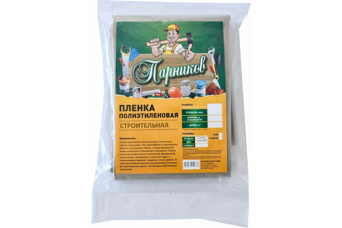 Строительная пленка Парников 1 сорт, 150 мкм 4680036959693 изготавливается из полимеров путем плавки, а также путем обработки вторсырья и глубокой очистки. Применяется техническая пленка в строительной промышленности, сельском хозяйстве и торговле для упаковки и фасовки различной продукции.