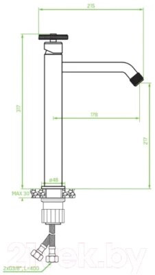 - В комплекте смеситель, аэратор, гибкая подводка, донный клапан
