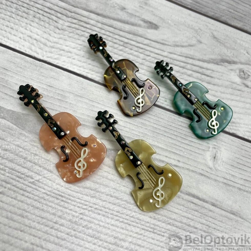 Бижутерия брошь для музыканта Скрипка 6.5 см Цвет Золотой кварц