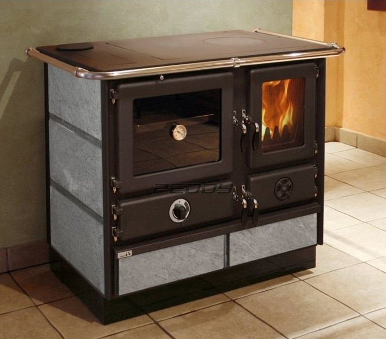 Кухонная печь MBS Thermo Magnum Plus S изготовлена из эмалированной стали, а дверцы, верхняя плита и топочная камера - из чугуна. Боковые панели изготовлены из натурального камня талькохлорита, который имеет привлекательный внешний вид, а также славится своими теплонакопительными свойствами.