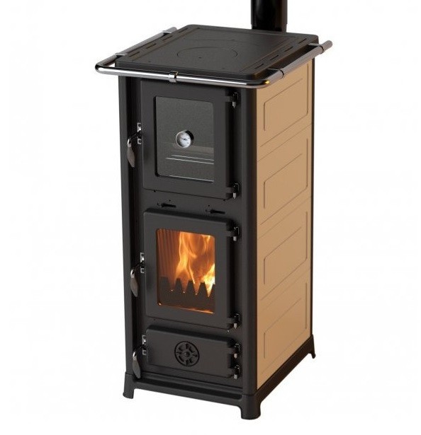 Печь-камин MBS Olympia Plus изготовлена из эмалированной стали, топочная, поддувальная и дверца духового шкафа, а также верхняя плита и основание печи - из чугуна. Камера сгорания также выложена чугунными пластинами.Печь может отопить до 60 - 80 м2 в зависимости от качества утепления здания.Печь оснащена большой чугунной плитой с одной конфоркой и стальным эмалированным духовым шкафом для приготовления пищи. По периметру варочной поверхности расположен хромированный ограничитель для защиты от ожогов.В нижней части печи расположен выдвижной вместительный ящик для хранения посуды или дров.Размер духовки ВхШхГ - 280х270х420 мм. Она оснащена эмалированным протвенем и термостатом.Размер топочной камеры ВхШхГ - 300х290х365 мм.Зольный ящик у печи очень глубокий, благодаря чему пепел придется выбрасывать реже. Он изготовлен из такой же эмалированной стали, как и сам корпус печи. Такое покрытие обеспечит ему долгий срок службы. Доступ к зольному ящику осуществляется через чугунную герметичную дверцу с регулятором тонкой подачи воздуха.Чугунные вкладыши в топке обеспечивают надежность и долгий срок службы печи.По бокам печи расположен конвекционных кожух благодаря которому теплый воздух быстрее распространяется по помещению.В нижней части печи расположен ящик для хранения посуды или дров.Дверца печи герметичная, она имеет термостойкий уплотнительный шнур как по периметру створки, так и по периметру стекла. Чугунная поддувальная дверца также герметичная. Это позволяет осуществлять тонкую дозированную подачу воздуха в топочную камеру при помощи круглого регулятора, что является важнейшим фактором, влияющим на длительность горения.На задней внутренней стенке топочной камеры расположены отверстия вторичного дожига газов, сквозь которые в камеру сгорания попадает дополнительная порция воздуха и вступает в реакцию горения с частицами топлива. Благодаря этому несгоревшие частицы сажи догорают, дымоход и стекло остаются более чистыми, КПД печи повышается.В верхней части печи расположена ручка третичной подачи воздуха на стекло (система "чистое стекло"), благодаря которой воздушный поток направляется на стекло и, вступая в реакцию горения, выжигает налет сажи на нем и препятствует дальнейшему оседанию копоти на стекле.Печь имеет европейский сертификат CE.Эмалированный корпус печи может быть окрашен в бежевый, черный, бордовый или красный цвет.Печь имеет весьма привлекательный дизайн. Топочная и поддувальная дверцы, а также верхняя панель печи в стенки топочной камеры отлиты из чугуна, что придает ей надежность и богатый внешний вид. Большая чугунная топочная дверь укомплектована термостойкой стеклокерамикой. Все это вместе с привлекательной ценой делает печь MBS Olympia Plus достойным вариантом отопления для дачи либо загородного дома.