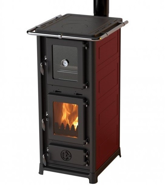 Печь-камин MBS Olympia Plus изготовлена из эмалированной стали, топочная, поддувальная и дверца духового шкафа, а также верхняя плита и основание печи - из чугуна. Камера сгорания также выложена чугунными пластинами.Печь может отопить до 60 - 80 м2 в зависимости от качества утепления здания.Печь оснащена большой чугунной плитой с одной конфоркой и стальным эмалированным духовым шкафом для приготовления пищи. По периметру варочной поверхности расположен хромированный ограничитель для защиты от ожогов.В нижней части печи расположен выдвижной вместительный ящик для хранения посуды или дров.Размер духовки ВхШхГ - 280х270х420 мм. Она оснащена эмалированным протвенем и термостатом.Размер топочной камеры ВхШхГ - 300х290х365 мм.Зольный ящик у печи очень глубокий, благодаря чему пепел придется выбрасывать реже. Он изготовлен из такой же эмалированной стали, как и сам корпус печи. Такое покрытие обеспечит ему долгий срок службы. Доступ к зольному ящику осуществляется через чугунную герметичную дверцу с регулятором тонкой подачи воздуха.Чугунные вкладыши в топке обеспечивают надежность и долгий срок службы печи.По бокам печи расположен конвекционных кожух благодаря которому теплый воздух быстрее распространяется по помещению.В нижней части печи расположен ящик для хранения посуды или дров.Дверца печи герметичная, она имеет термостойкий уплотнительный шнур как по периметру створки, так и по периметру стекла. Чугунная поддувальная дверца также герметичная. Это позволяет осуществлять тонкую дозированную подачу воздуха в топочную камеру при помощи круглого регулятора, что является важнейшим фактором, влияющим на длительность горения.На задней внутренней стенке топочной камеры расположены отверстия вторичного дожига газов, сквозь которые в камеру сгорания попадает дополнительная порция воздуха и вступает в реакцию горения с частицами топлива. Благодаря этому несгоревшие частицы сажи догорают, дымоход и стекло остаются более чистыми, КПД печи повышается.В верхней части печи расположена ручка третичной подачи воздуха на стекло (система "чистое стекло"), благодаря которой воздушный поток направляется на стекло и, вступая в реакцию горения, выжигает налет сажи на нем и препятствует дальнейшему оседанию копоти на стекле.Печь имеет европейский сертификат CE.Эмалированный корпус печи может быть окрашен в бежевый, черный, бордовый или красный цвет.Печь имеет весьма привлекательный дизайн. Топочная и поддувальная дверцы, а также верхняя панель печи в стенки топочной камеры отлиты из чугуна, что придает ей надежность и богатый внешний вид. Большая чугунная топочная дверь укомплектована термостойкой стеклокерамикой. Все это вместе с привлекательной ценой делает печь MBS Olympia Plus достойным вариантом отопления для дачи либо загородного дома.