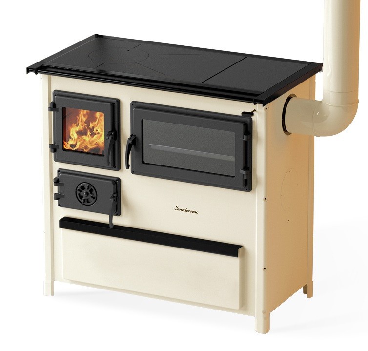 Плита на дровах предназначена для отопления помещения и приготовления пищи на варочной поверхности и в духовом шкафу.Кухонная печь на дровах MBS Trend TCN изготовлена из эмалированной стали, верхняя плита из толстого стального листа, а топочная камера выложена огнеупорным шамотом.Печь может отопить до 35 - 50 м2 в зависимости от качества утепления здания.Печь оснащена большой плитой с одной конфоркой и стальным эмалированным духовым шкафом для приготовления пищи. В передней части варочной поверхности расположен ограничитель для защиты от ожогов.В нижней части печи расположен выдвижной вместительный ящик для хранения посуды или дров.Размер топочной камеры ВхШхГ - 270х335х370 мм.Размер духовки ВхШхГ - 205х370х325 мм. Она оснащена эмалированным протвенем.Дымоход диаметром 120мм может быть расположен слева или справа на боковой либо верхней панели.Дверцы печи герметичные, они имеют термостойкий уплотнительный шнур как по периметру створки, так и по периметру стекла. Это позволяет осуществлять тонкую дозированную подачу воздуха в топочную камеру, что является важнейшим фактором, влияющим на длительность горения.Зольный ящик у печи очень глубокий, благодаря чему пепел придется выбрасывать реже. Он изготовлен из такой же эмалированной стали, как и сам корпус печи. Такое покрытие обеспечит ему долгий срок службы.Шамот в топочной камере не только защищает корпус печи от прогорания, но и способствует увеличению КПД и лучшей очистке стекла от сажи. Шамотный кирпич способствует повышению температуры внутри топочной камеры, а значит более полному сгоранию дров. Поэтому в печах, футерованных шамотом, всегда в зольном ящике остается меньше пепла. Также шамот аккумулирует тепло, благодаря чему печь дольше остается теплой.Печь выпускается в кремовом, белом и красном цветах.Печь имеет европейский сертификат CE.