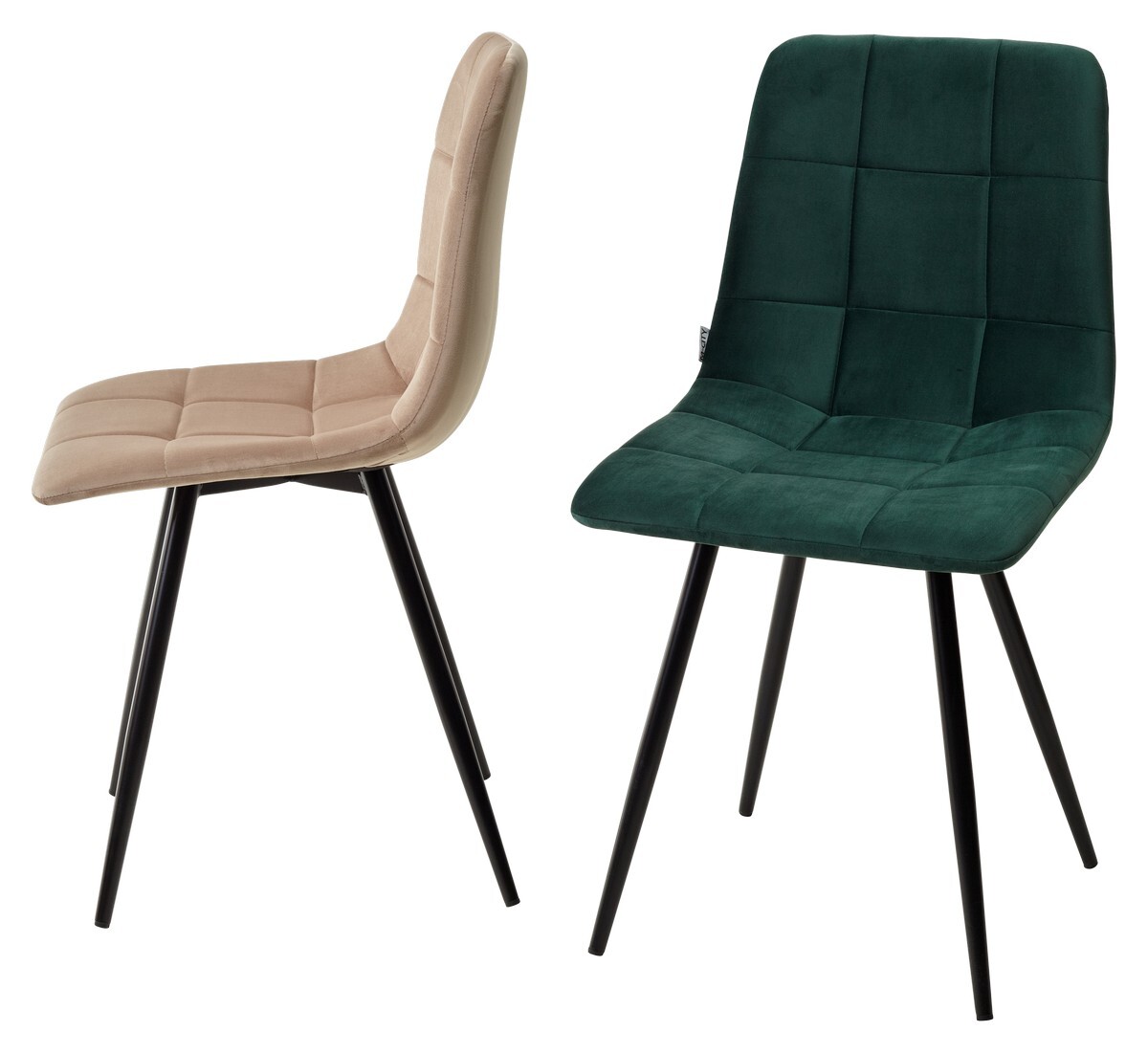 Сиденье обито велюром. Строчка - квадрат. Ножки стула - металл черного цвета. Упакован - 4 шт./1 кор.