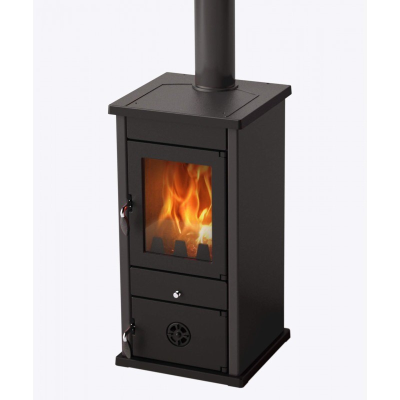 Печь-камин MBS Vesta Eco изготовлена из эмалированной стали, топочная и поддувальные дверцы, а также верхняя плита и основание печи - из чугуна. Камера сгорания выложена вермикулитом.Печь может отопить до 45 - 60 м2 в зависимости от качества утепления здания.Верхняя чугунная панель может использоваться для разогрева или приготовления пищи.Размер топочной камеры ВхШхГ - 400х290х335 мм.Зольный ящик у печи очень глубокий, благодаря чему пепел придется выбрасывать реже. Он изготовлен из такой же эмалированной стали, как и сам корпус печи. Такое покрытие обеспечит ему долгий срок службы. Доступ к зольному ящику осуществляется через чугунную герметичную дверцу с регулятором тонкой подачи воздуха.Вермикулит в топке не только защищает корпус печи от прогорания, но и способствует увеличению КПД и лучшей очистке стекла от сажи. Поскольку вермикулит является жаропрочным изоляционным материалом, он способствует повышению температуры внутри топочной камеры, а значит более полному сгоранию дров. Точно также сажа со стекла гораздо лучше выгорает в печах с вермикулитом, по сравнению с другими материалами.Дверца печи герметичная, она имеет термостойкий уплотнительный шнур как по периметру створки, так и по периметру стекла. Чугунная поддувальная дверца также герметичная. Это позволяет осуществлять тонкую дозированную подачу воздуха в топочную камеру при помощи круглого регулятора, что является важнейшим фактором, влияющим на длительность горения.Печь имеет европейский сертификат CE. Печь, соответствующая европейским стандартам имеет небольшие выбросы углекислого газа CO в окружающую среду. Говоря простым языком, при горении в печи MBS Vesta Eco топливо сгорает максимально эффективно, а в дымоход улетает минимум сажи. Сажа - это не сгоревшие дрова. Если сажи мало, значит КПД высокий, меньше коптиться стекло, меньше пепла остается в зольнике, реже нужно чистить дымоход.Эмалированный корпус печи может быть окрашен в бежевый, черный, бордовый, серый или красный цвет.Печь имеет весьма привлекательный дизайн. Топочная и поддувальная дверцы, а также верхняя панель печи отлиты из чугуна, что придает ей надежность и богатый внешний вид. Камера сгорания печи надежно защищена вермикулитом. Большая чугунная топочная дверь укомплектована термостойкой стеклокерамикой. Все это вместе с привлекательной ценой делает печь MBS Vesta Eco достойным вариантом отопления для дачи либо загородного дома.