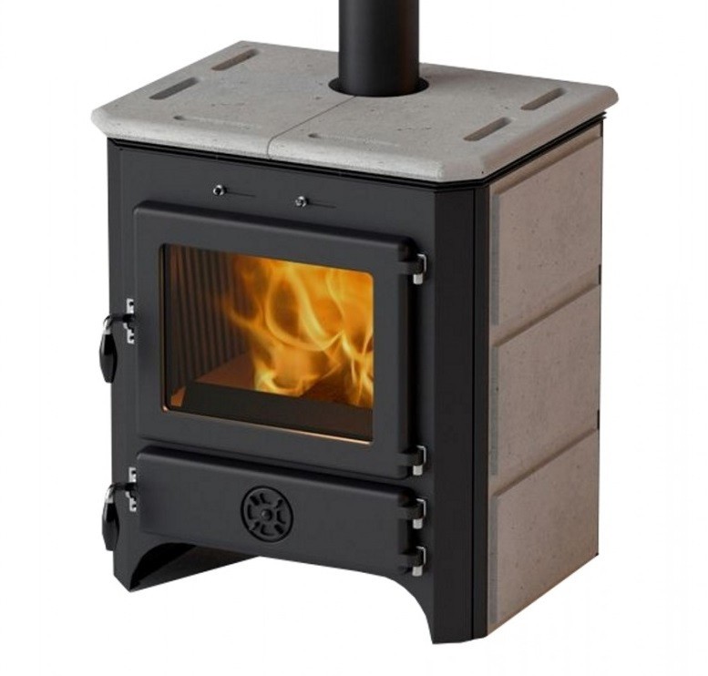 Верхняя крышка печи, а также боковые панели изготовлены из натурального камня талькохлорита, который имеет привлекательный внешний вид, а также славится своими теплонакопительными свойствами.