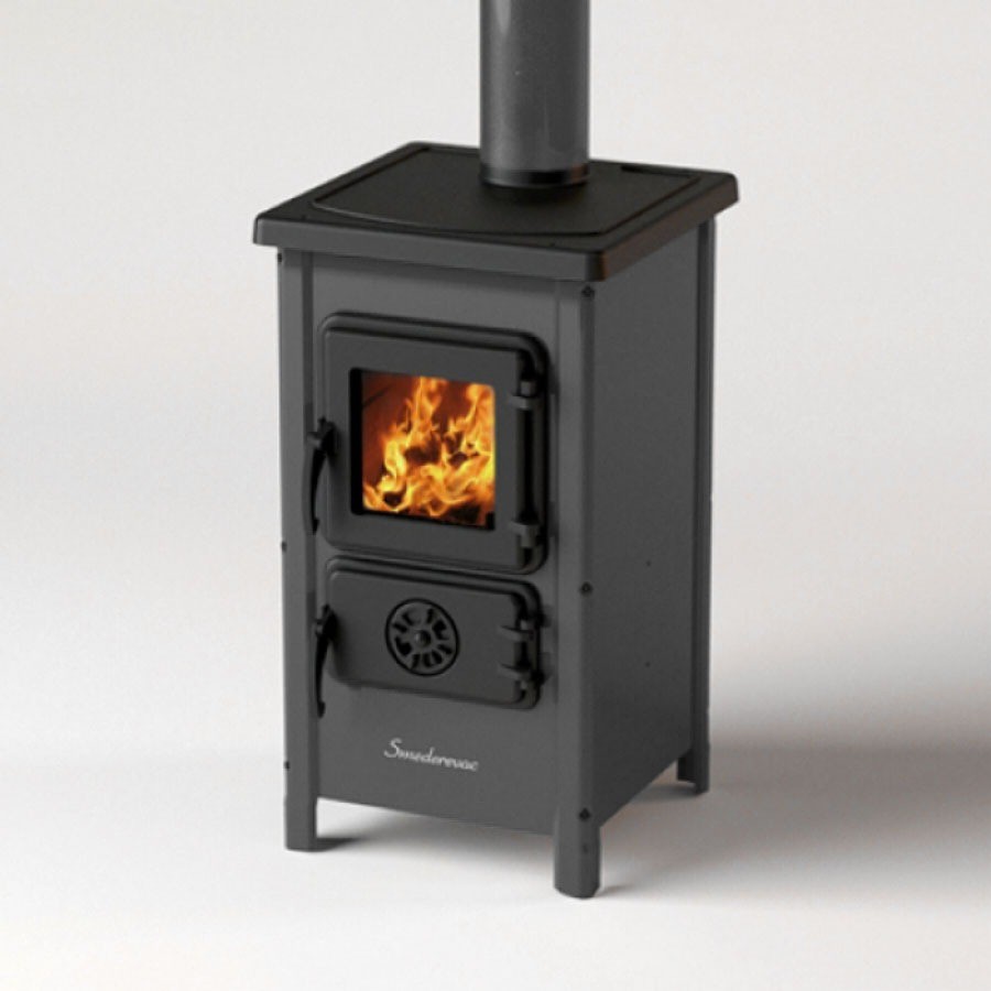 Печь имеет весьма привлекательный дизайн. Топочная и поддувальная дверцы, а также верхняя панель печи отлиты из чугуна, что придает ей надежность и богатый внешний вид. Камера сгорания печи надежно защищена огнеупорным шамотом. Все это вместе с привлекательной ценой делает печь MBS Happy E достойным вариантом отопления помещения на даче либо в загородном доме.