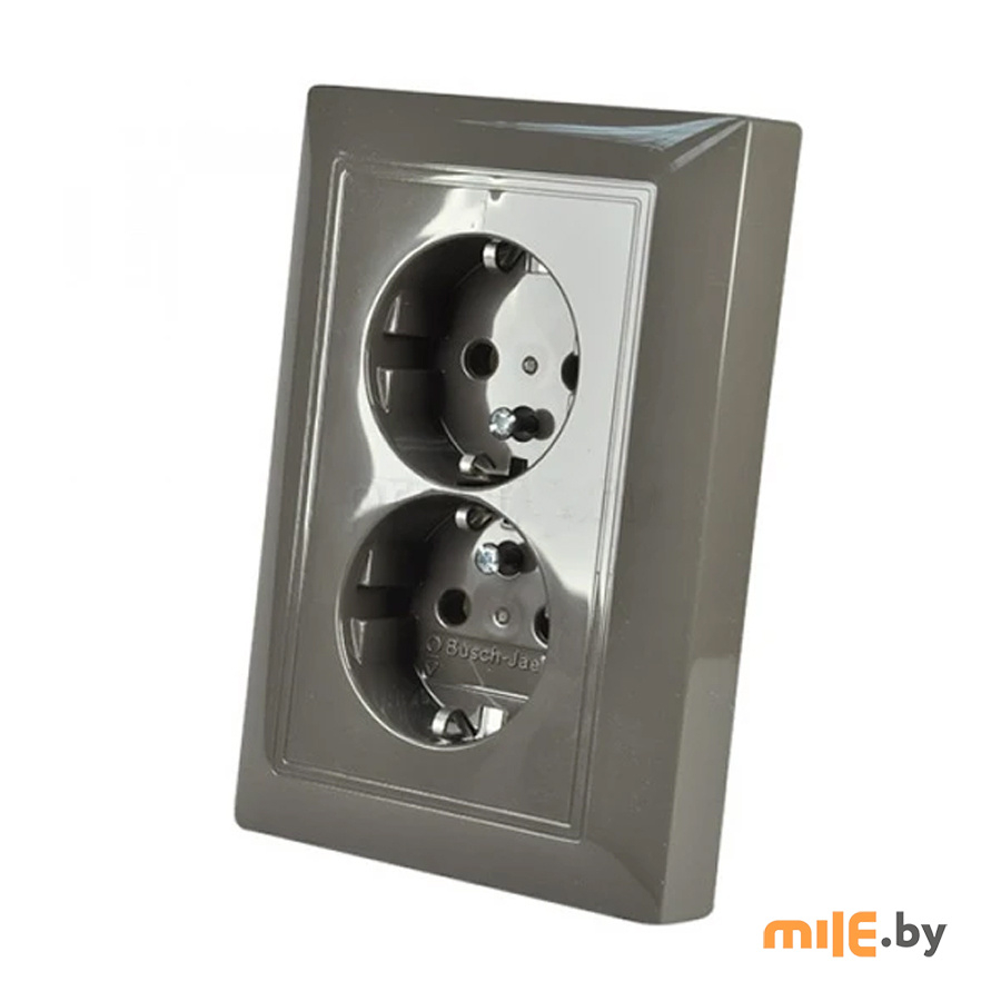 ABB "Basic 55' 2014-0-1477 (шато-черный) - моноблок из двух розеток с заземлением и безвинтовыми зажимами