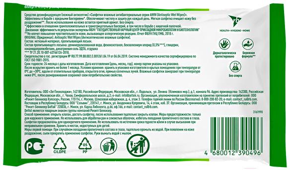 Влажные салфетки Dettol Антибактериальные (60шт)