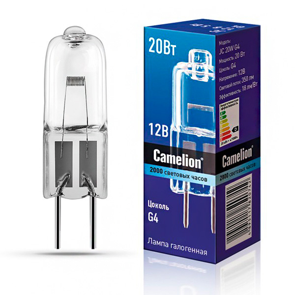 Лампы с цоколем G4 , которые также называют " лампами штырькового типа ", отличаются небольшими размерами, что в свою очередь делает их очень востребованными при организации различных типов освещения. Лампа Camelion JC 20W G4 в форме капсулы предназначена для общего и декоративного освещения