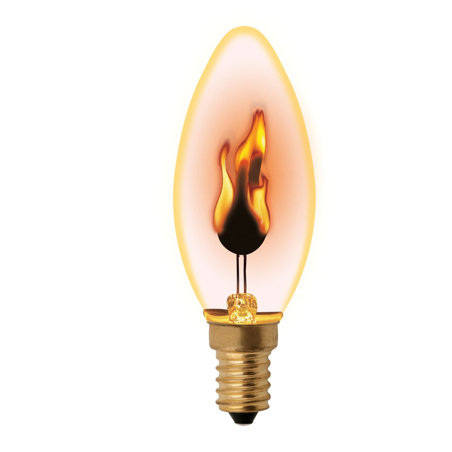 IL-N-C35-3/RED-FLAME/E14/CL Лампа декоративная с типом свечения эффект пламени. Форма «свеча», прозрачная. ТМ Uniel.