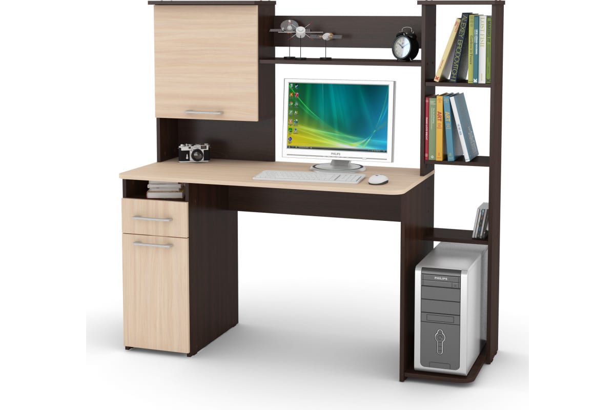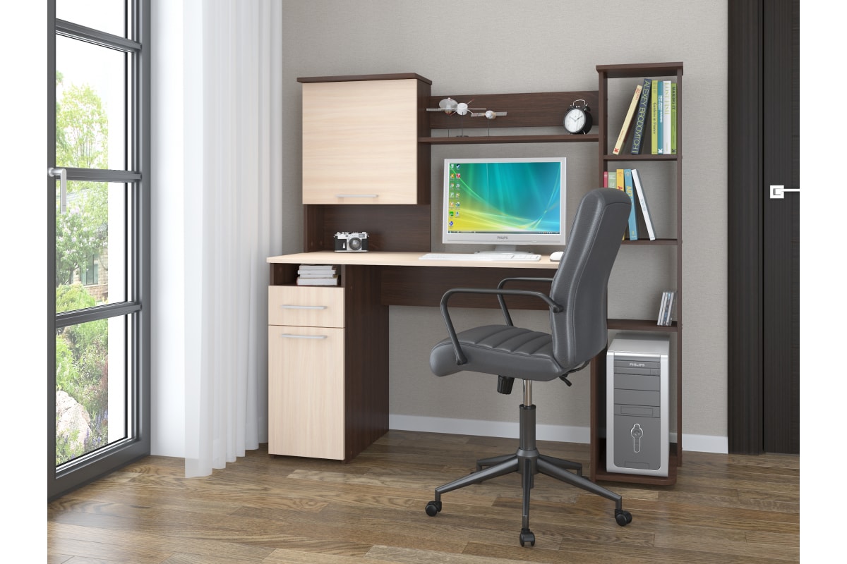 Компьютерный стол Атмосфера Лоредо венге цаво/дуб молочный 00-00009180 предназначен для дома или офиса.