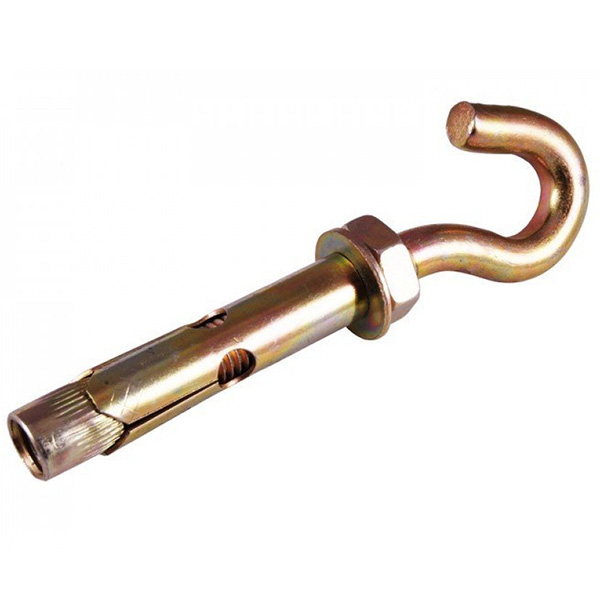 Используется для крепления тяжеловесных конструкций к полнотелому бетону, природному строительному камню, полнотелому кирпичу. Может применяться для крепления к тонким бетонным перегородкам. Изготовлен из стали, поверхность оцинкована и пассирована. Болт с резьбой и конусообразной гайкой, цилиндрической подвижной муфтой с продольными прорезями и шайбой. Головка имеет форму кольца. При завинчивании болта конусообразная гайка втягивается в муфту и происходит распирание. Причем крепление идет вдоль всей муфты за счет ее дополнительной деформации у основания анкера.