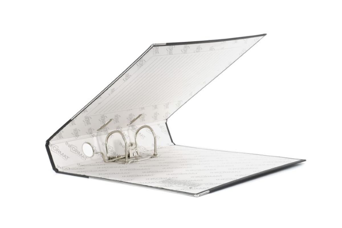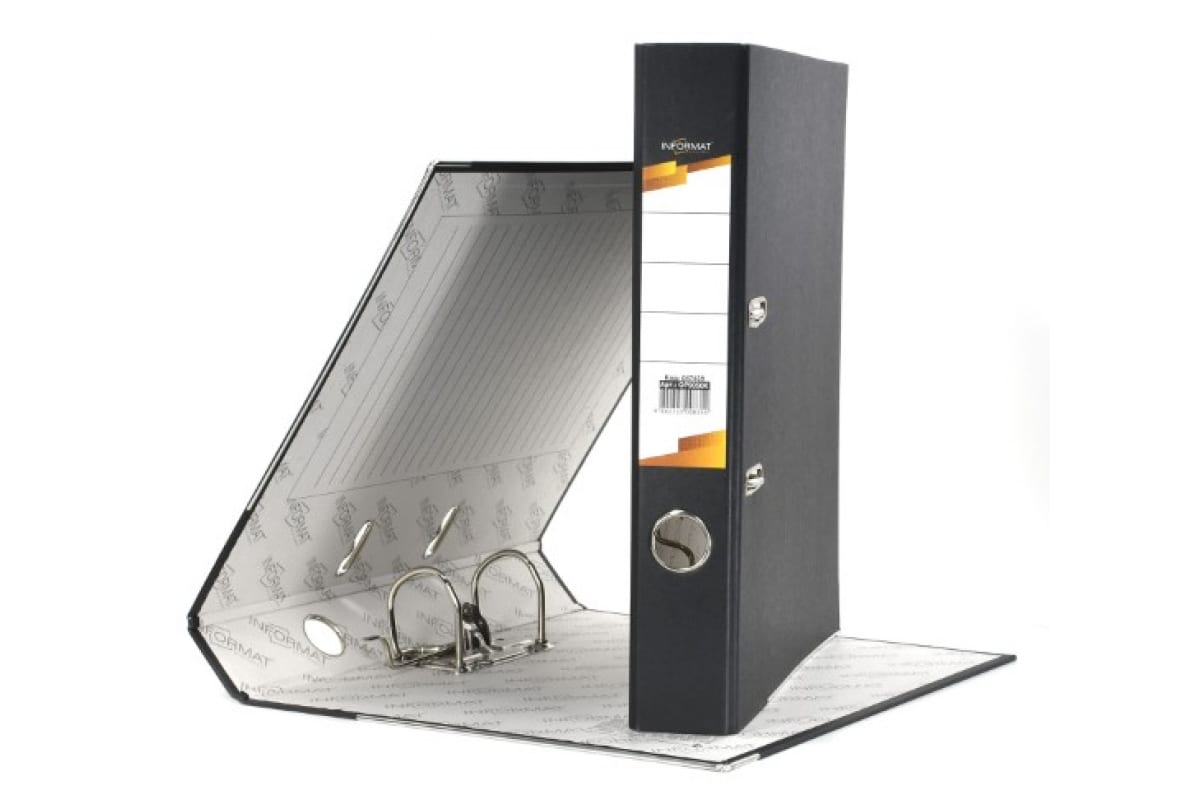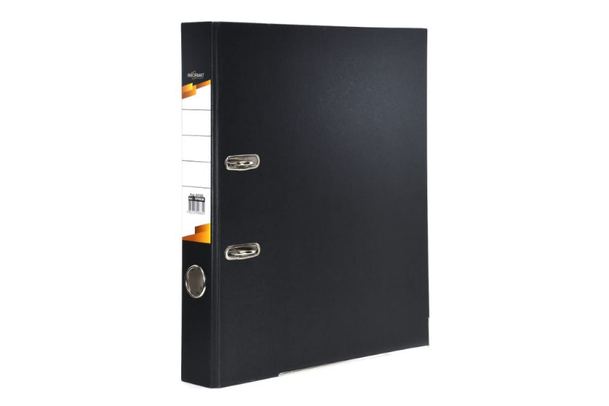 Папка-регистратор INFORMAT 55 мм, черная, металлическая окантовка, собранная OP9050K предназначена для хранения и ведения документации.