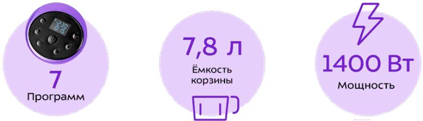 • Макс. установка таймера 1 ч (от 1 до 60 минут с шагом 1 минута)