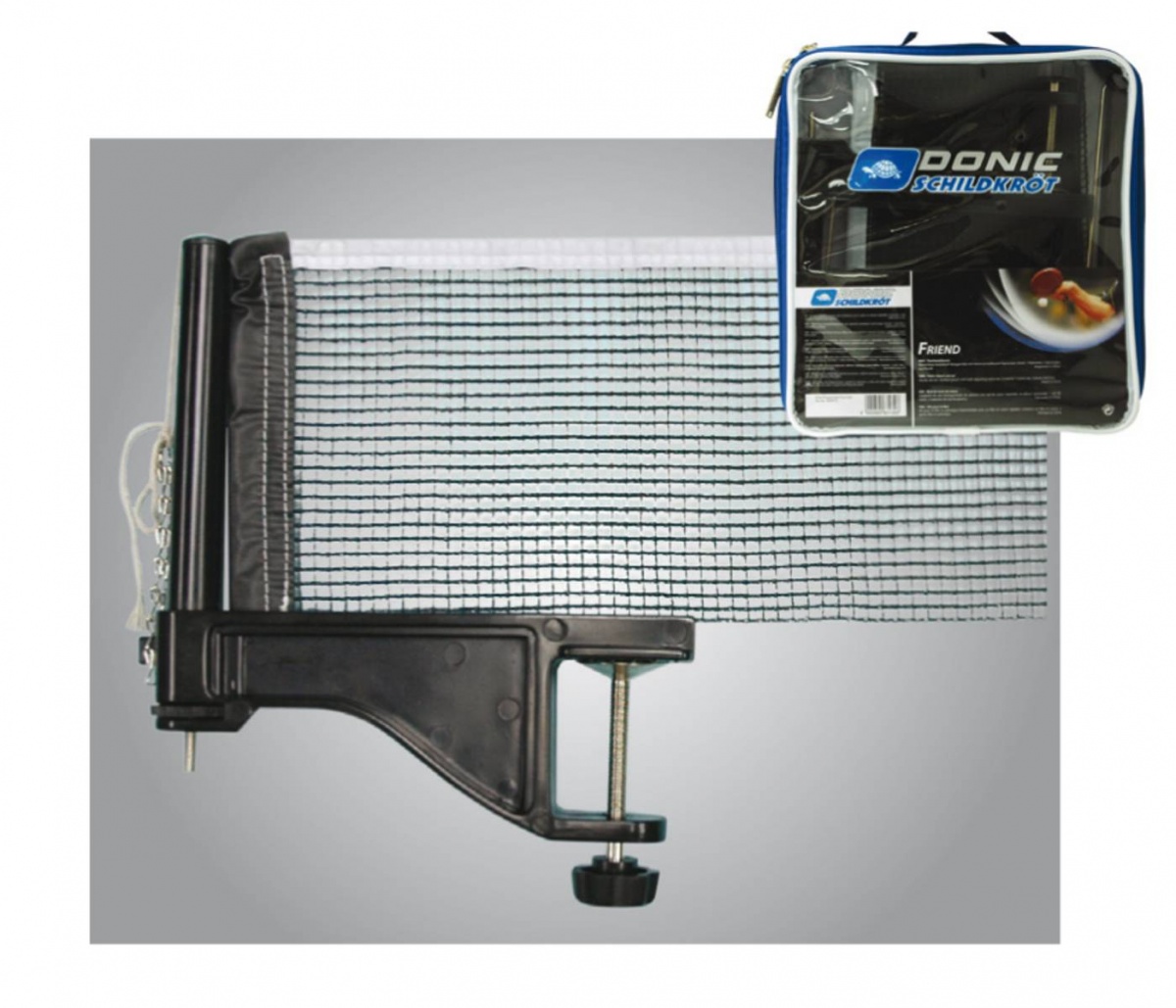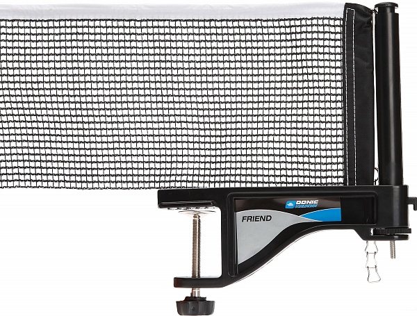 Donic Friend — нейлоновая сетка с регулируемым натяжением верхнего троса, надежные пластиковые стойки оснащены системой контроля высоты.