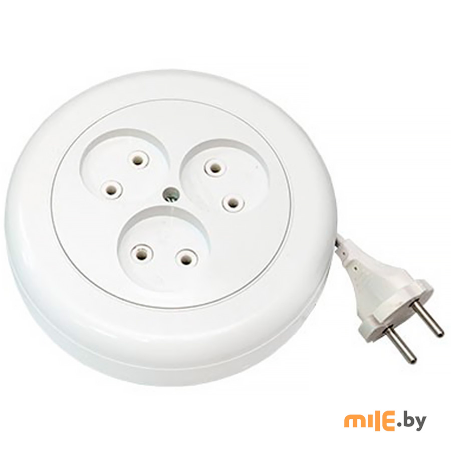 Удлинитель на катушке трехместный. Катушка выполнена из термоустойчивого, негорючего, ударопрочного пластика.