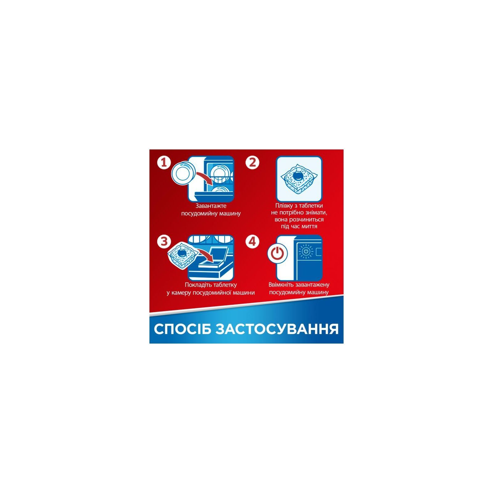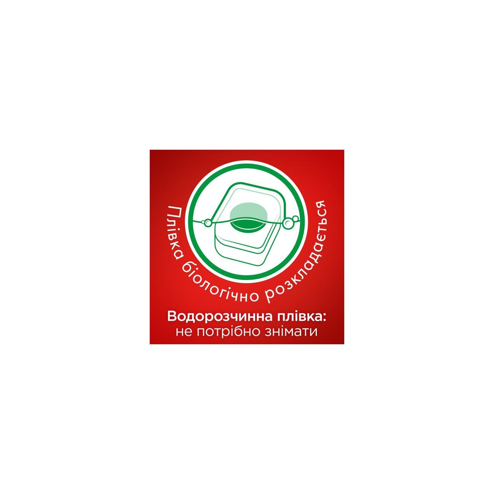 Таблетка загорнута у водорозчинну плівку, яку не потрібно знімати перед завантаженням
