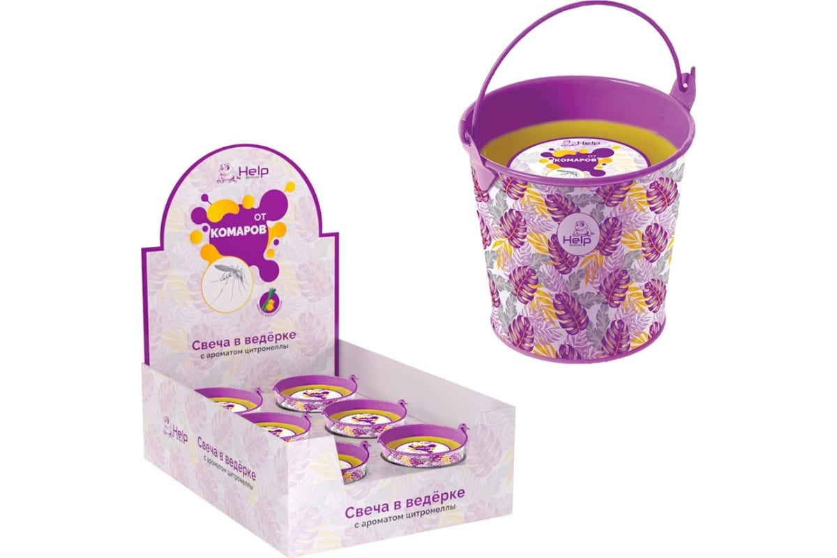 Свеча HELP c ароматом цитронеллы, в ведерке, в дисплей-боксе 80446 - это безопасное средство защиты от комаров в помещении и на открытом воздухе.