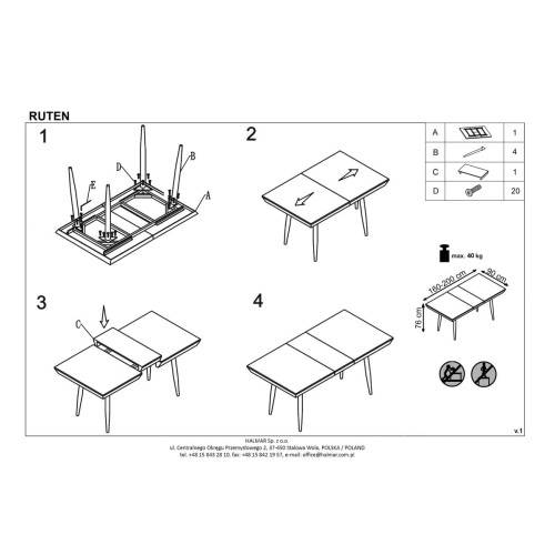 Стол обеденный HALMAR RUTEN раскладной, серый/дуб медовый, 1..