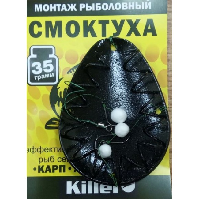 Эффективная снасть для ловли рыб семейства карповых.Смоктуха оснащена тремя крючками с пенопластовыми шариками на плетёных поводках и вертлюгом.артикул - MON-SMOK-35