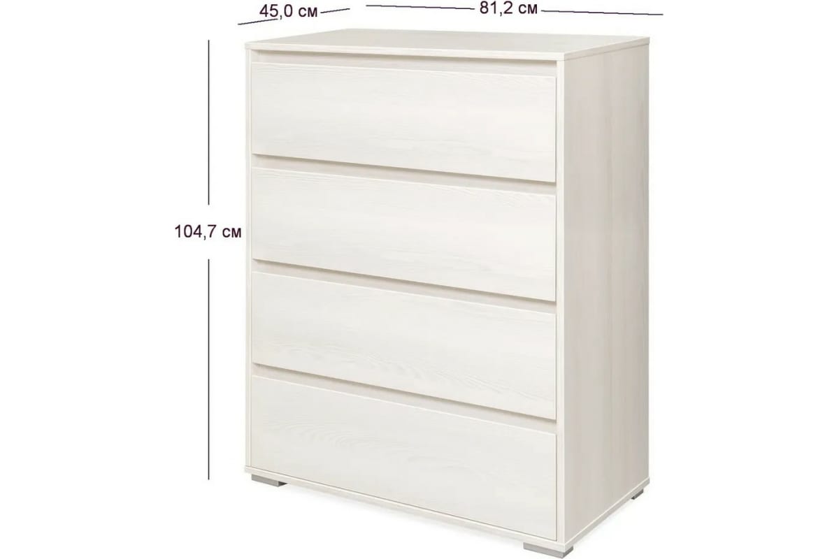Комод ООО Рэйгрупп Aleksa РГ-04 белый с ящиками, деревянный, ясень снежный ARG-4 8110445 предназначен для дома или офиса.
