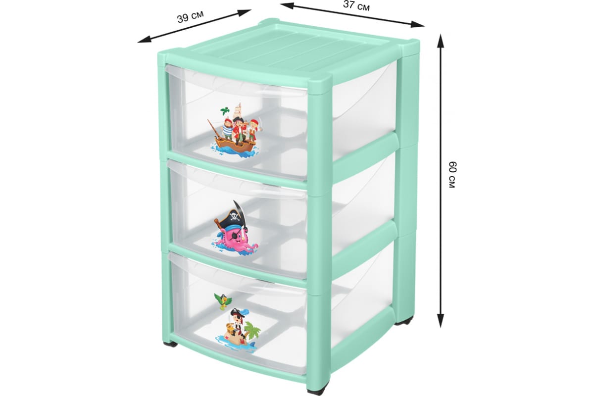 Детский комод Пластишка на колесах 3 ящика зеленый 43134280951