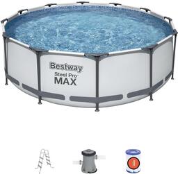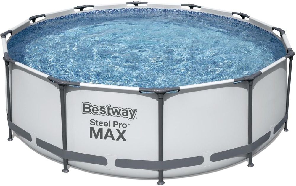 Семейный, каркасный, круглый, 9150 л, сливной клапан, комплектация: лестница, фильтр-насос, картриджный фильтр.