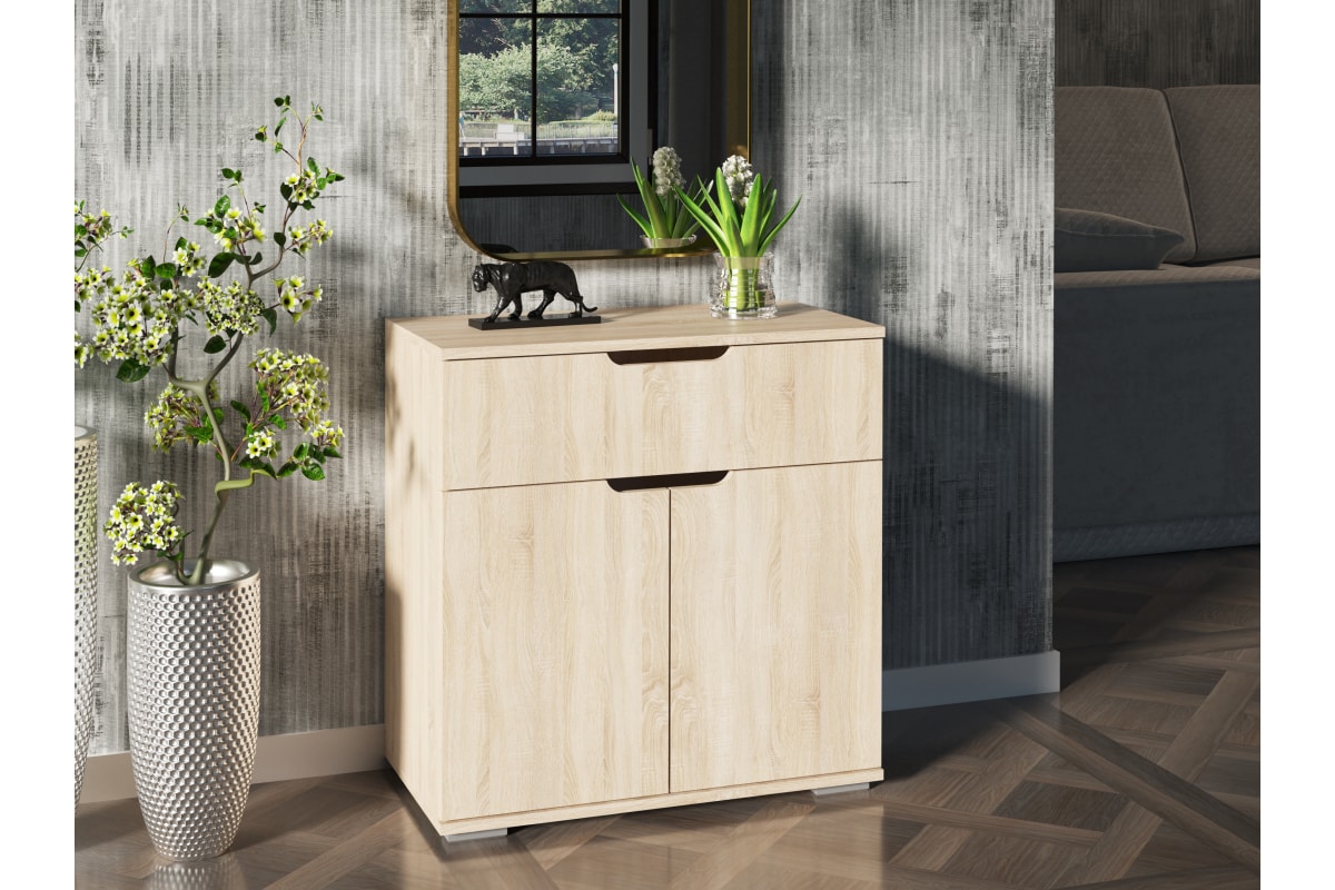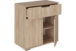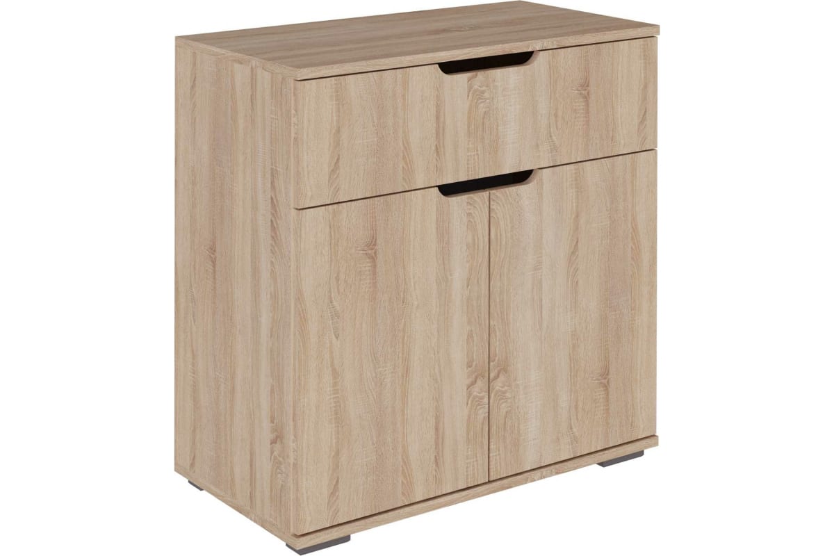Комод Атмосфера 2Я-03 дуб сонома светлый 00-00015855 можно использовать как детский комод для игрушек, в прихожую, под телевизор в гостиную, для хранения вещей или как офисный комод. Он изготовлен из ЛДСП. Ящик легко открывается одной рукой на бесшумных направляющих - можно использовать в спальне, а за двумя распашными дверцами скрывается широкая полка – в ней можно разместить разные вещи: одежда, постельное белье, игрушки, книги. Комод с ящиком и полкой хорошо сочетается с другой мебелью для хранения и зеркалом.