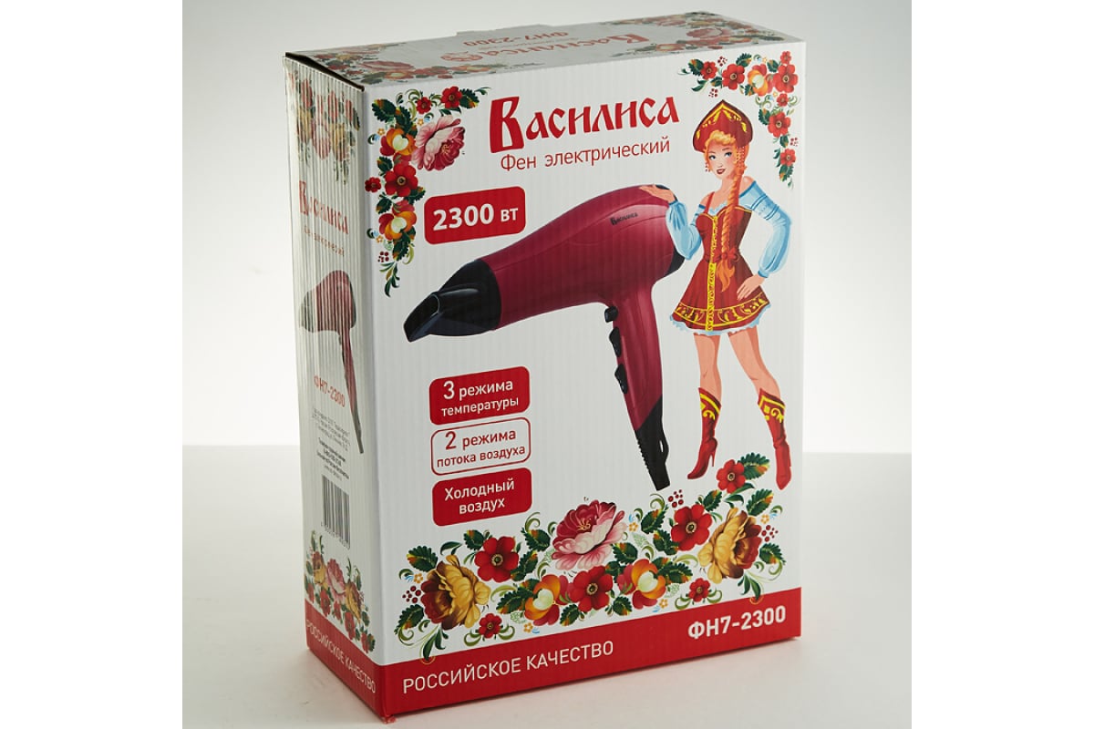 Фен ВАСИЛИСА ФН7-2300, холодный воздух, 2300 Вт, темно-сиреневый с черным 12 0R-00002311 предназначен для сушки волос.