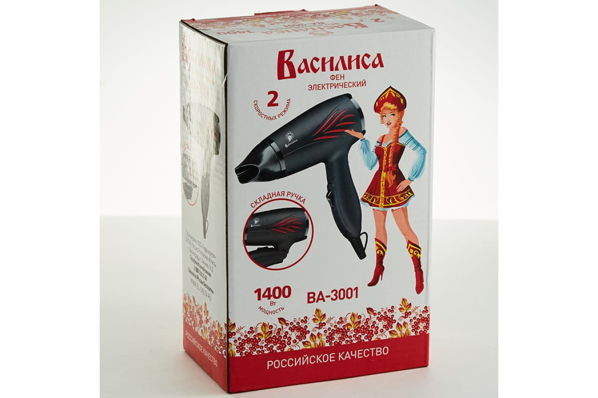 Фен ВАСИЛИСА ВА-3001, складная ручка, 1400 Вт, черный с красным 12 0R-00001790 предназначен для сушки волос.