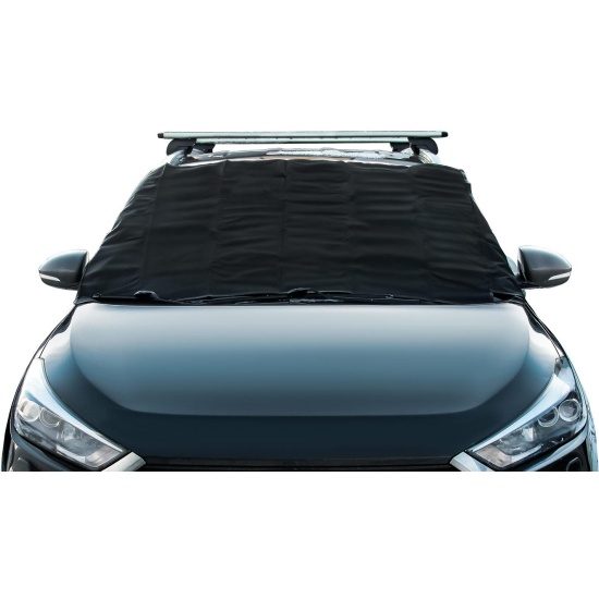 Практичная накидка, на лобовое стекло, защищает припаркованный автомобиль от оседающего на него снега, инея, льда - зимой и солнечных лучей, грязи, пыли, тополиных почек - летом. Очень легкий и быстрый монтаж – края накидки защемляются передними дверьми автомобиля. Накидка многократного использования сшита из нетканого материала, который не примерзает к стеклу, сохраняет тепло и не пропускает солнечных лучей. Используя накидку, больше не нужно тратить драгоценное время на очистку лобового стекла.